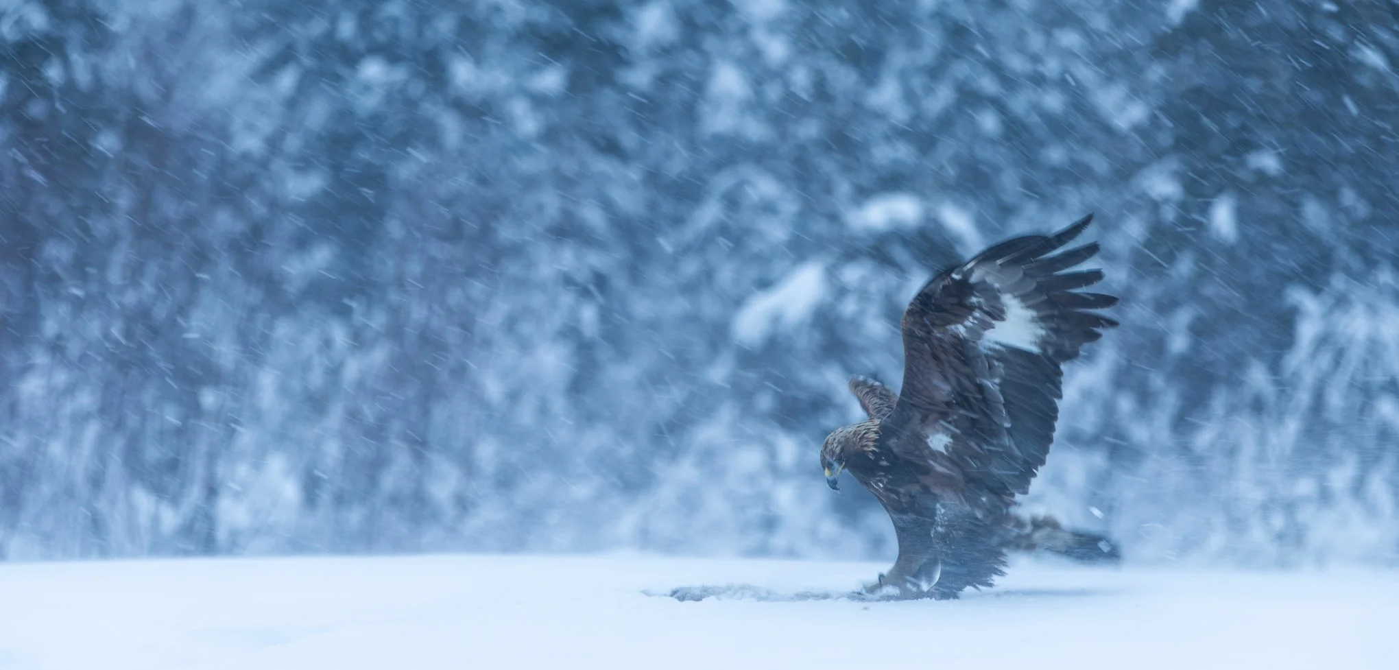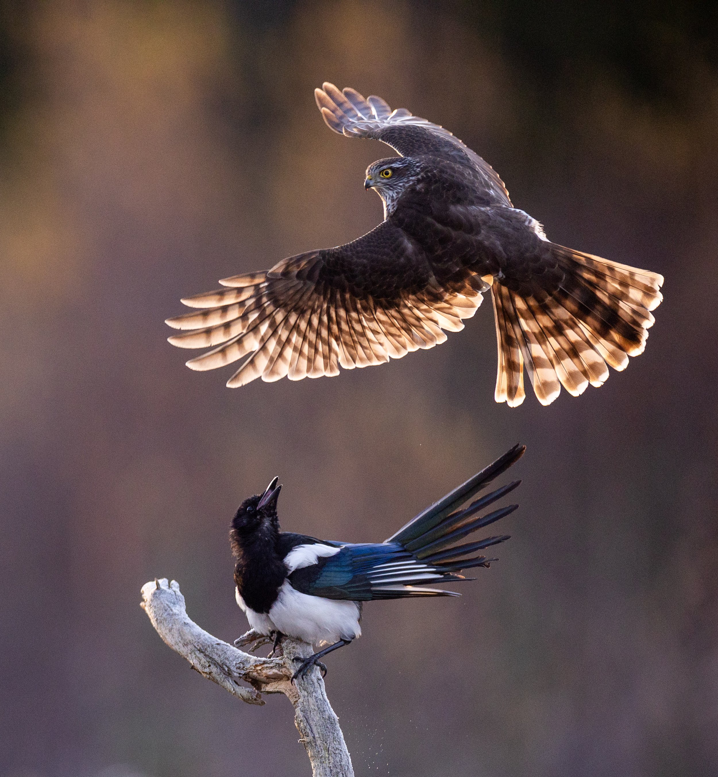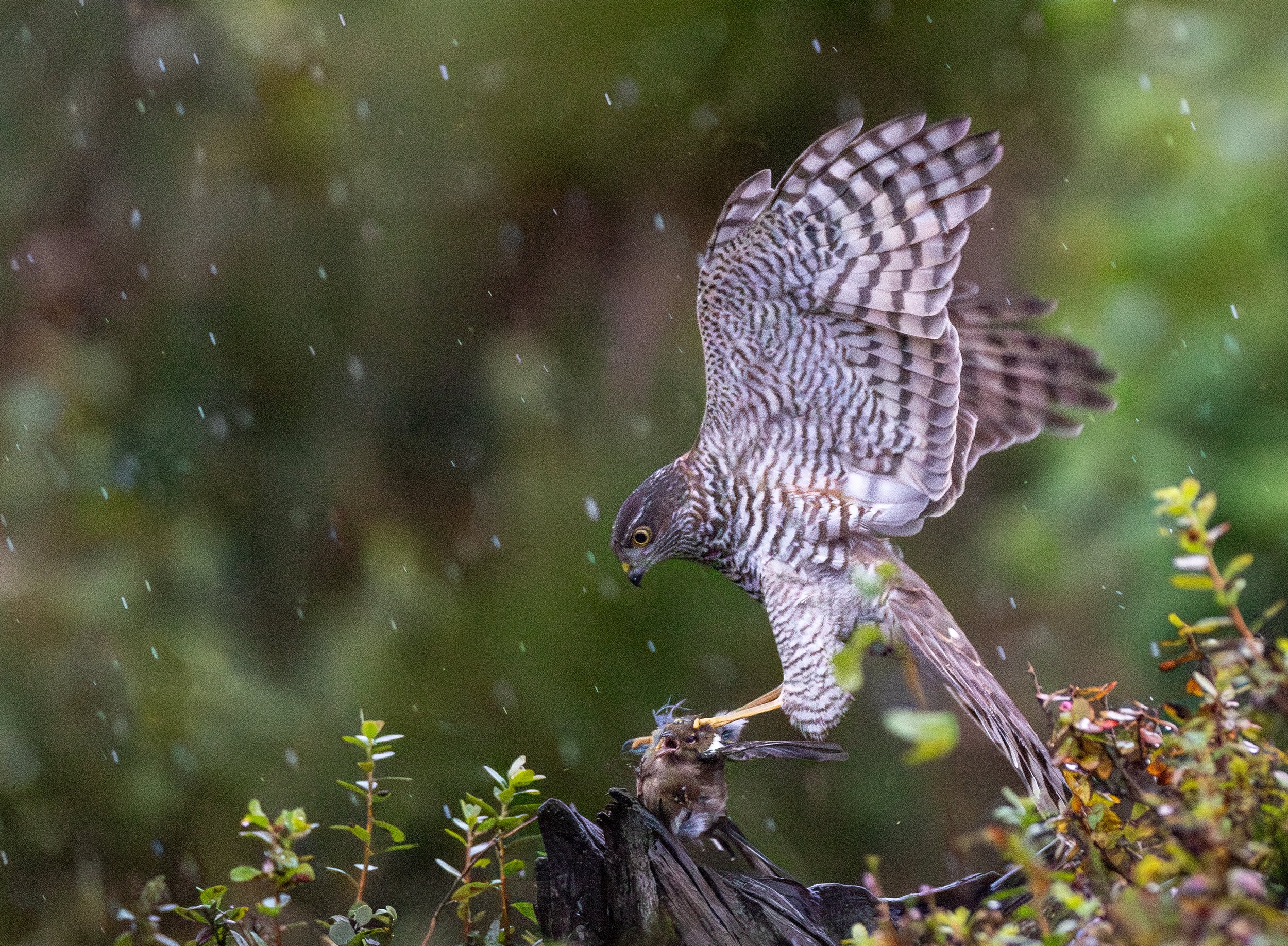 Fotografer spurvehauker på jakt etter nøtteskriker om høsten og majestetiske kongeørner om vinteren fra vår Myrskjulet – din førsteradsplass til spektakulær rovfuglaction.